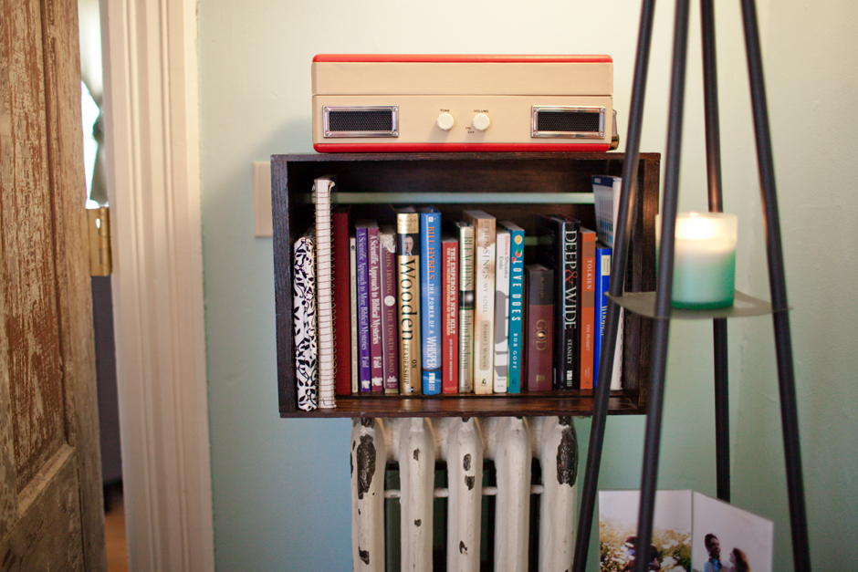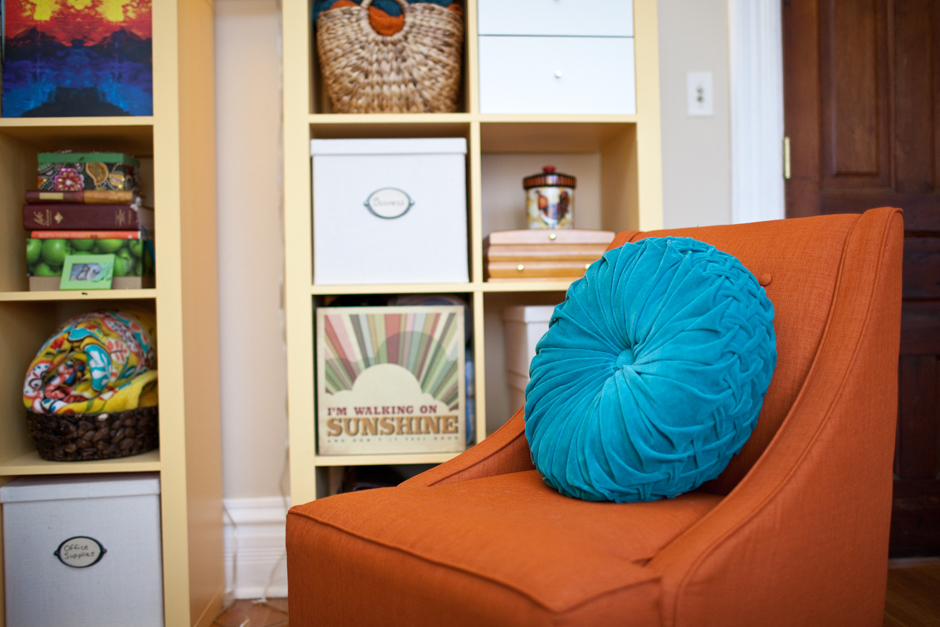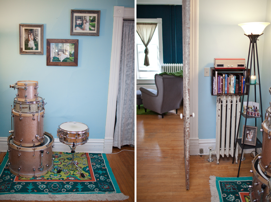 This room didn’t actually need a lot of work, but it posed the biggest creative black hole for me. I puzzled over this room in circles. I would come up with the perfect idea and then that perfect idea would be over taken by another perfect idea and so on. Finally, with the push to finish the room before the a Sunshine Moment Photography Studio GRAND OPENING party I moved my last item and painted the last wall only two days before the open house. This room stretched me because it was everything I didn’t know. My job was to create a space that would serve as Josh’s office while be the ideal space for practicing drums, keys, and guitar. Since the room doesn’t have a lot of available wall space due to the radiator, double doors, window, and closet spaces I was left to puzzle through all the pieces I needed to artistically display within the space.