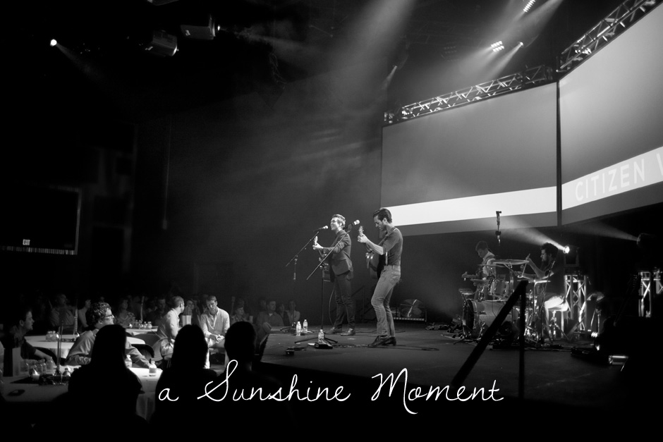 Last week Citizen Way played for Christ Community Church‘s senior graduation party. All the students came clad in fancy gowns escorted by various family members. They spent an hour enjoying hors d’oeuvres and jazz music. Then they were ushered into this auditorium for a graduation speech and the Citizen Way concert.