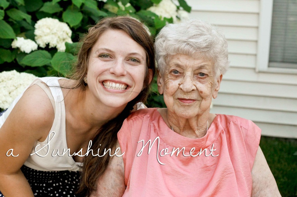 On Monday, February 25 at around 6:30AM my strong-willed and spunky grandma breathed her last. I awoke at 7:30AM to a voicemail from my dad with the news and my heart was so glad that she was finally safely home and no longer in pain. As I listened through the voicemail I was given this beautiful vision of my white-haired, though obviously healthy, smiling Grandma. It was a smile free of pain and struggle and a face so full of life and peace and love and joy. She truly was so beautiful!